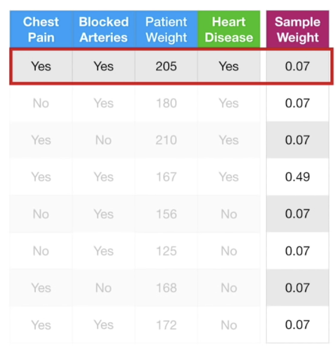 Sample의 Weight 을 업데이트 함으로써 다음 Stump를 위한 데이터 Sampling 과정에 영향을 끼친다.
