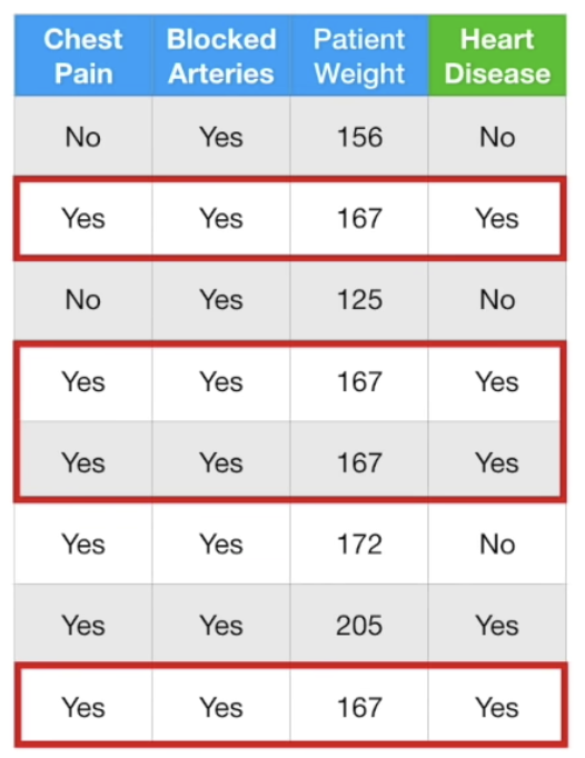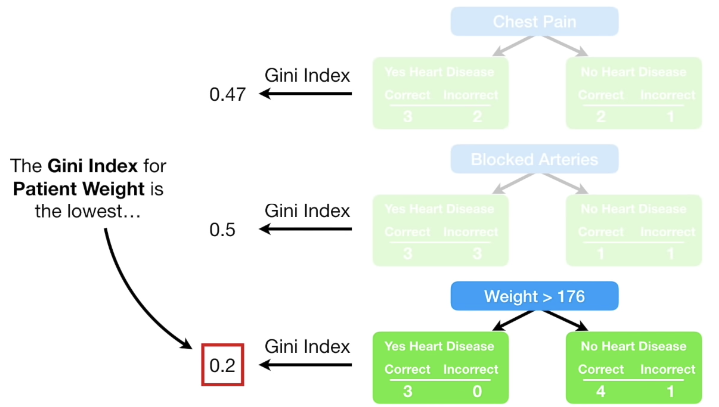 Patient Weight의 Gini Index가 가장 낮으므로 첫 노드로 선정 된다.