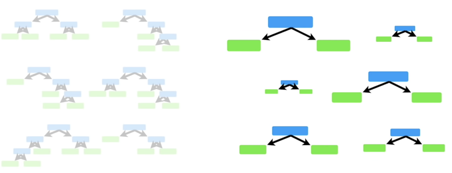 랜덤 포레스트는 트리를 만들 때 마다 full-sized tree를 만든다. 그리고 max sample 개수나 특정 조건에 따라 각각의 트리의 깊이가 다르다.