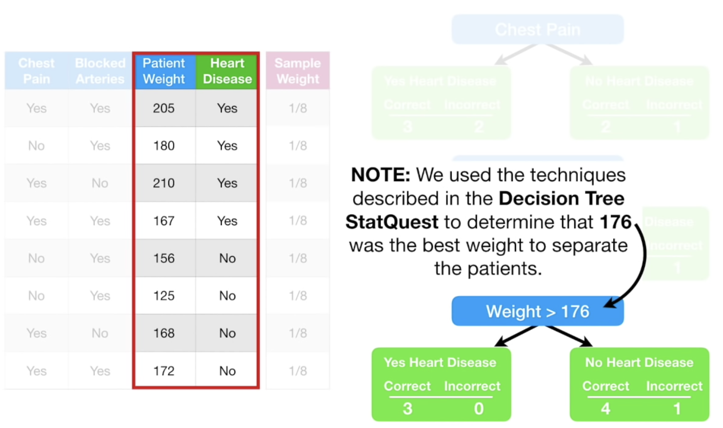 정리하자면, Weight > 176 스텀프는 0.97의 Amount of Say를 갖는다.