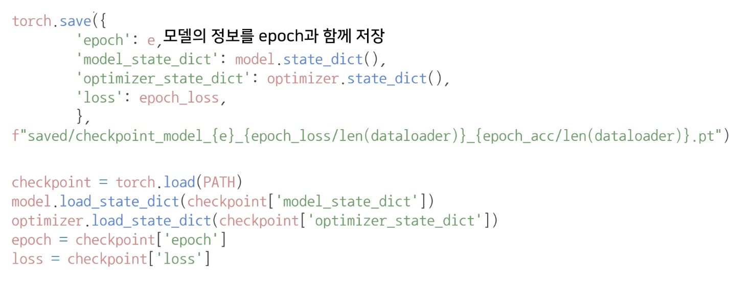 parameter만 저장해서 같은 모델을 돌릴 때, parameter만 넣어줄 수도 있다.