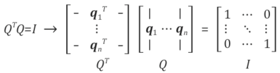 Q transpose와 Q 를 곱하면 Identity matrix가 나타난다.