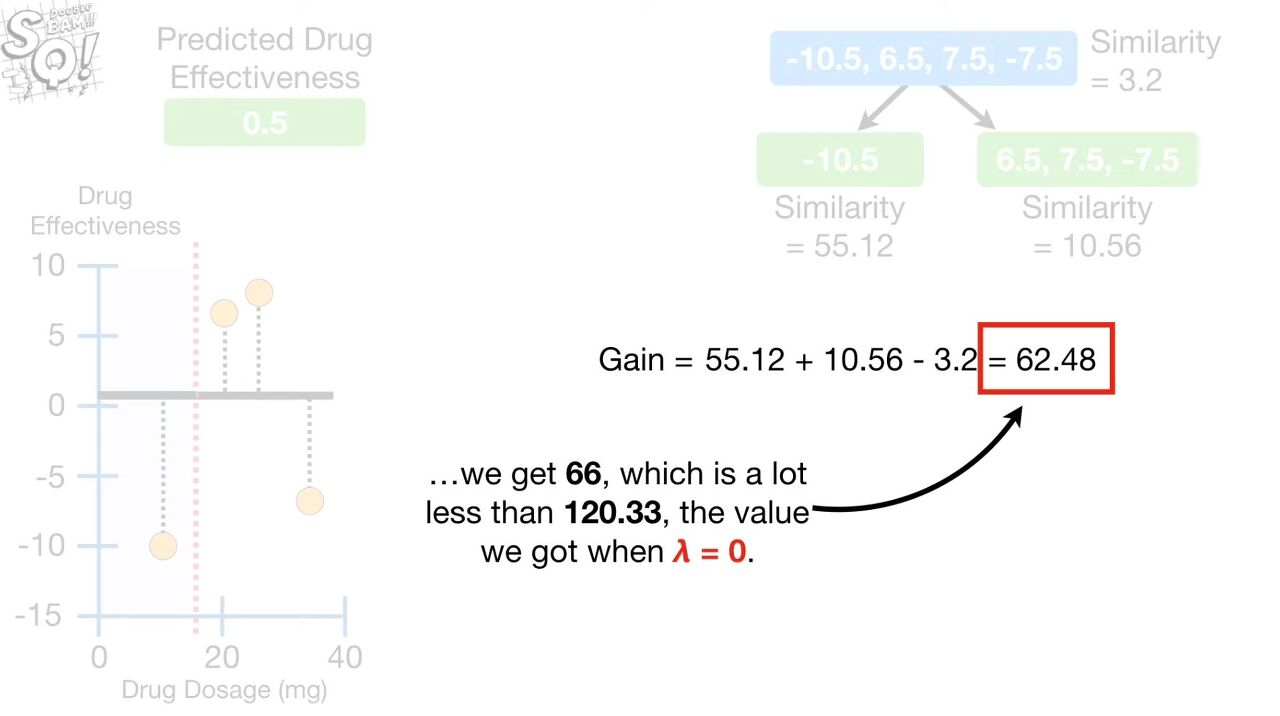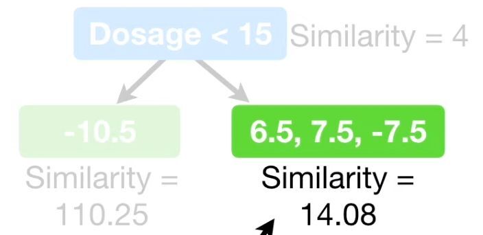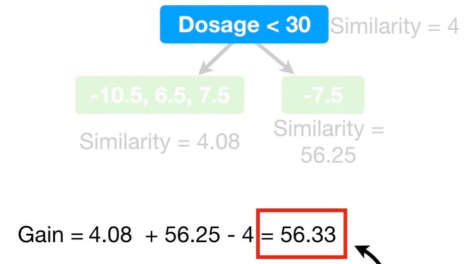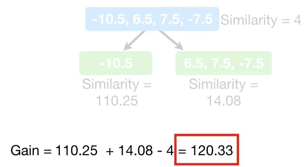 Left Similiarity + Right Similarity - Root Similarity를 수행하여 Gain 값을 구한다.