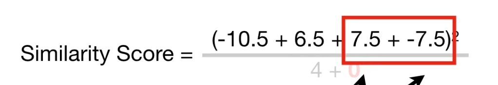 일단 initial guess 가 0.5 이므로, -10.5, ..., -7.5 총 4개의 similiarity score은 4이다.