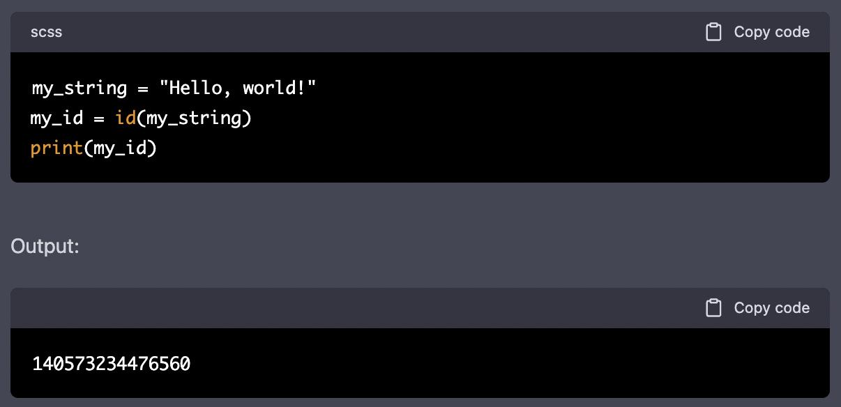 그러나 id() 라는 기능을 제공하여 string 전체에 대한 특정 interger 값을 제공해줄 수는 있다.