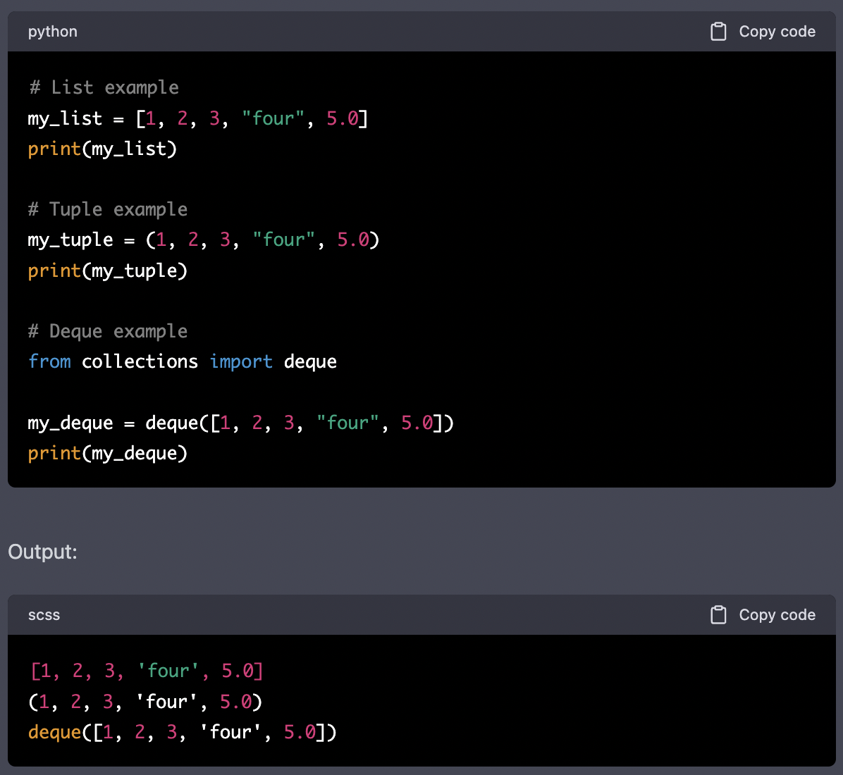 collections.deque: a mutable sequence optimized for adding and removing items from both ends