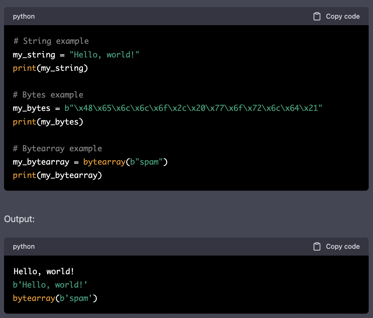 bytes: an immutable sequence of bytes