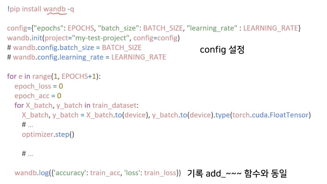 보통 Tensorboard, Weight & Biases 를 사용한다.
