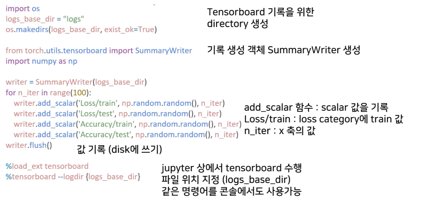 Pytorch도 연결이 가능해서 DL 시각화의 기본 핵심 기능이다.