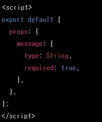 자식 컴포넌트는 props 를 통해 부모로부터 데이터를 받을 수 있다. 우선 허용할 props 를 선언해야 한다.