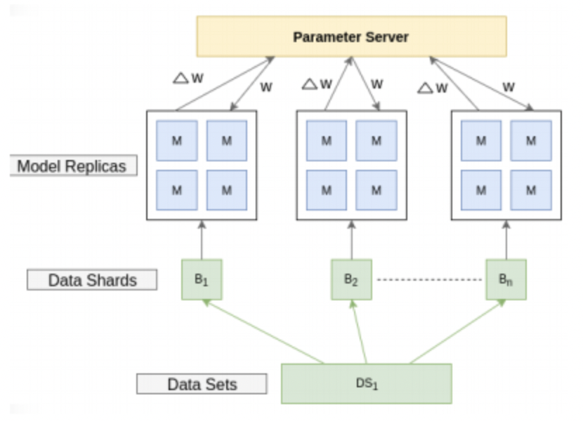 2) 전역 파라미터를 여러 파라미터 서버 노드가 나누어 병력적으로 처리할 수 있다.