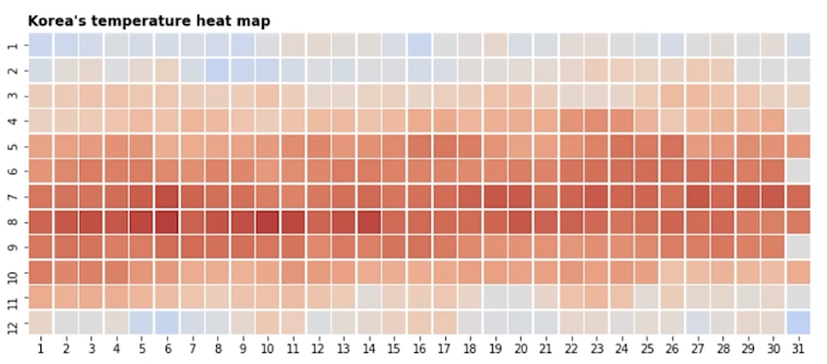 위에서 설명한 것과 같이, 값이 작을 수록 ~ 클 수록 cmap의 색상에 맵핑 된다.