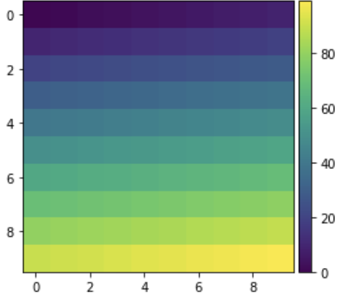 im = ax.imshow(np.arange(100).reshape((10, 10)))