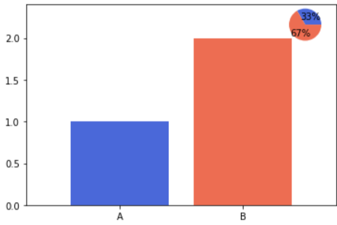 ax.bar(['A', 'B'], [1, 2],