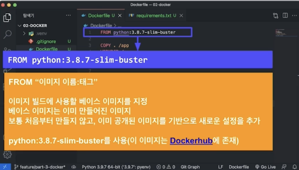 내가 참고한 베이스 이미지 언급 (파이썬 중에도 가볍, 테스트할때는 가벼운게 속도도 빠르다.)