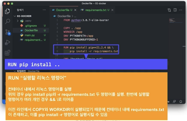 - EXPOSE: 컨테이너 외부에 노출할 포트 지정