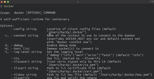 terminal 에서 docker 라고 치면 설치가 잘 되었나 확인 가능