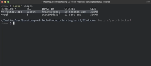 docker images 명령어로 방금 빌드한 이미지 확인 가능