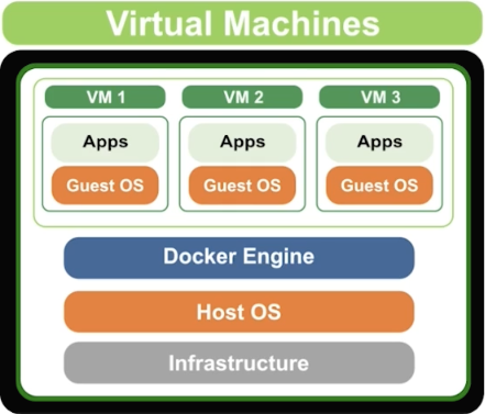 하지만 도커는 OS위에 OS를 설치하는게 아니라 현재 OS에 없는 것만 추가적으로 받아온다.