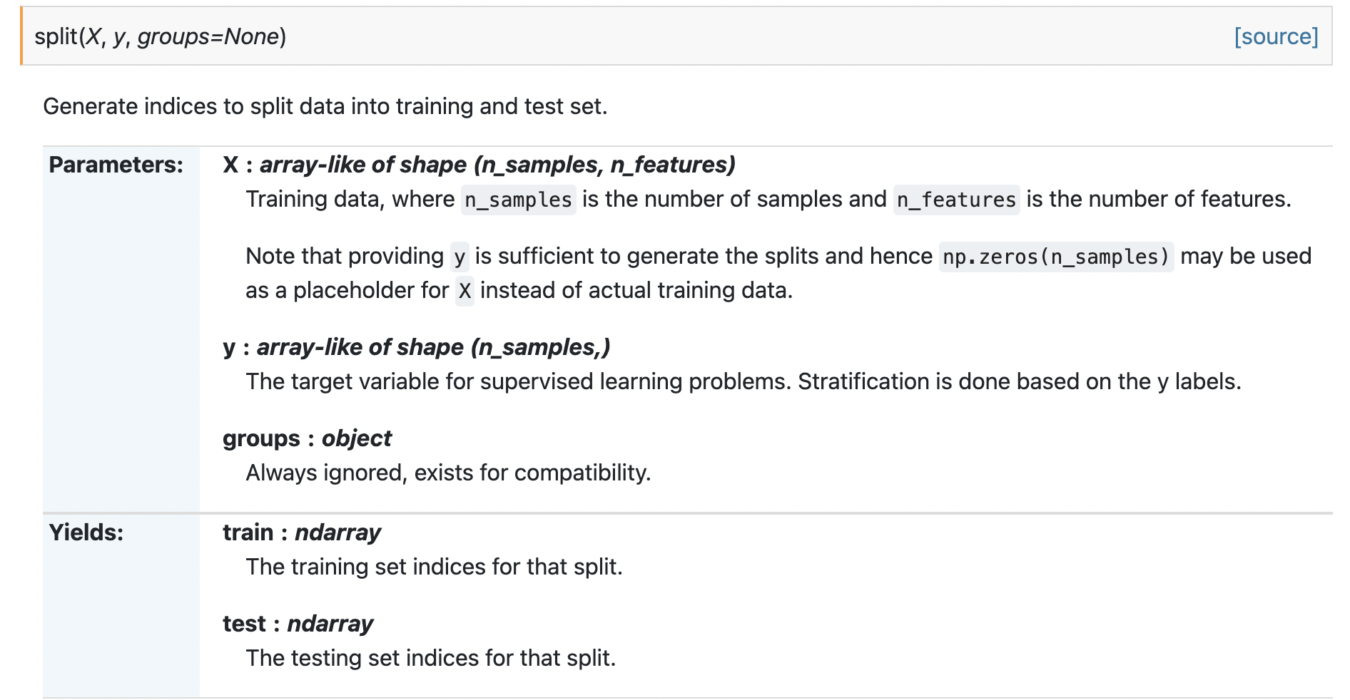 split에 인자로 X, y