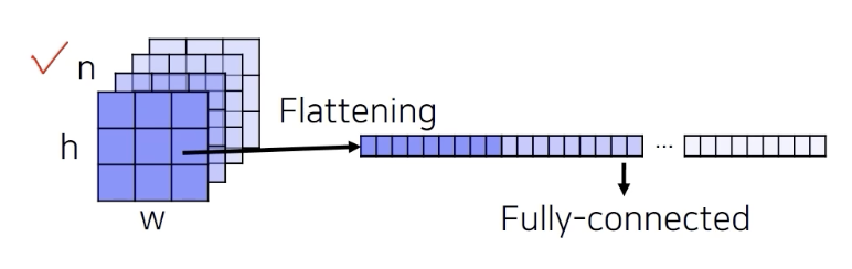 이 경우 영상의 공간 정보를 고려하지 않고 하나의 벡터로 섞여버린다.