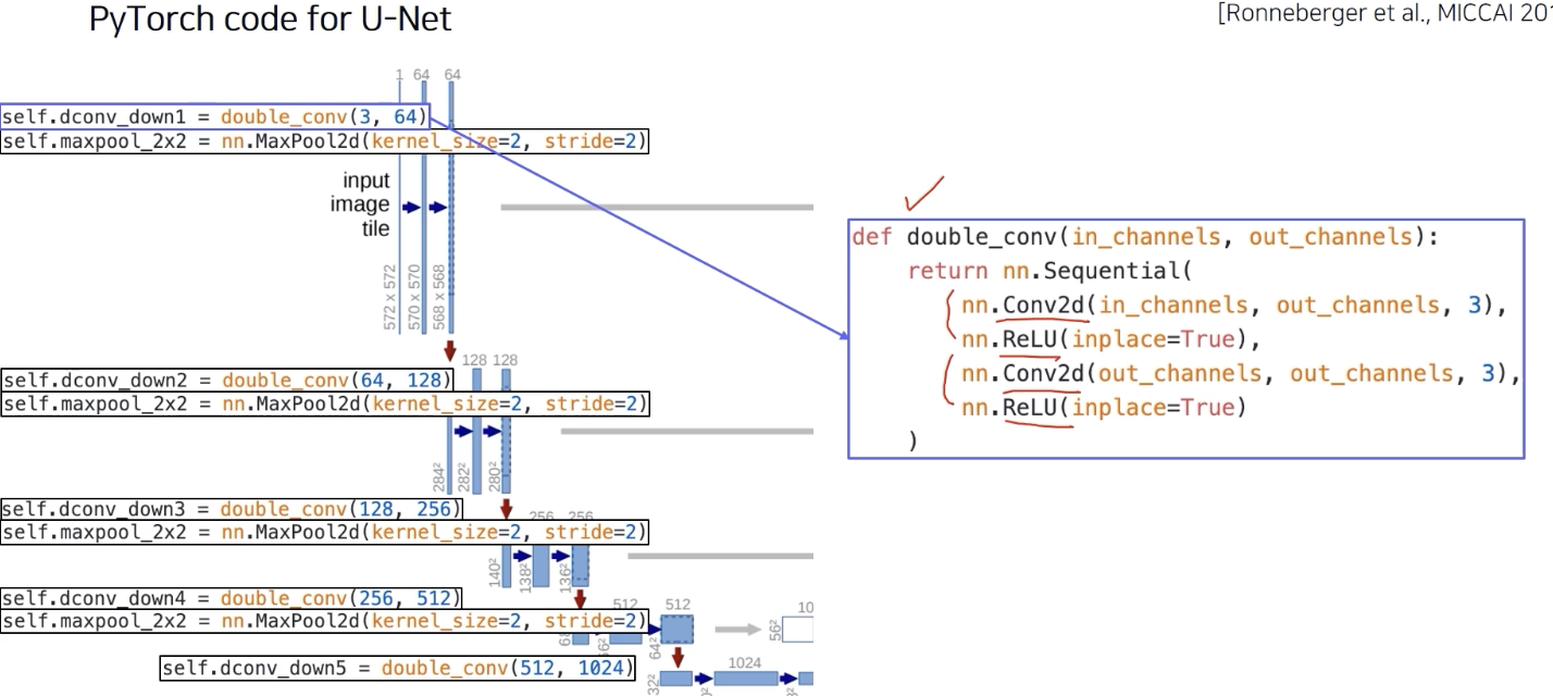 대칭되는 layer 는 activation map들이 concat될 수 있도록 해상도와 채널이 호환성 있는 값을 가진다.