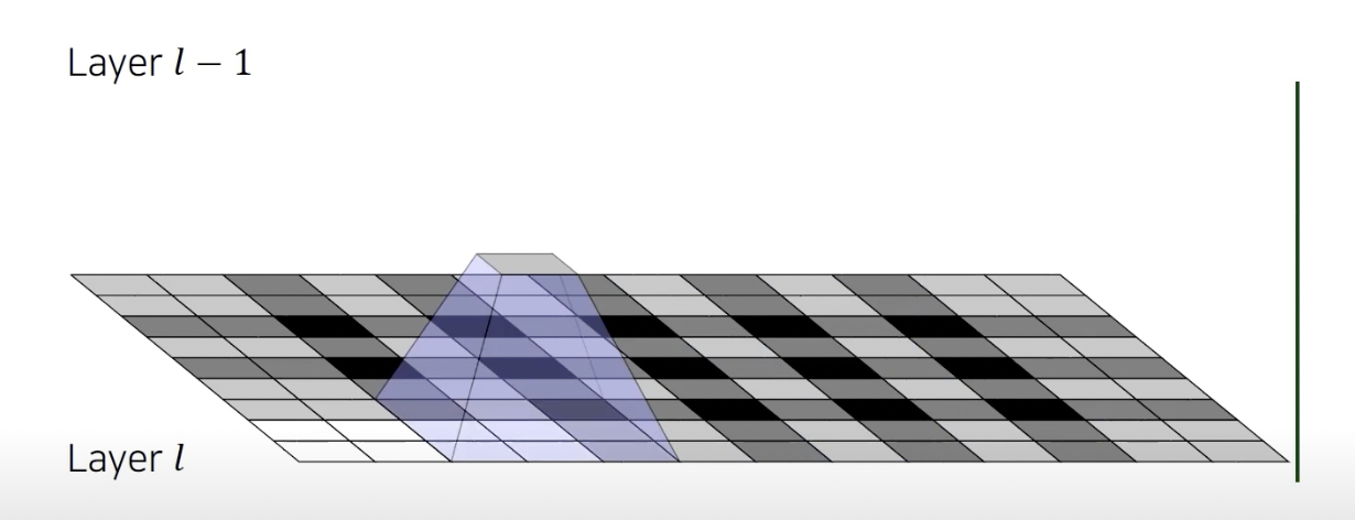 convolution kernel 사이에 dilation factor 만큼 일정 공간을 넣어준다.
