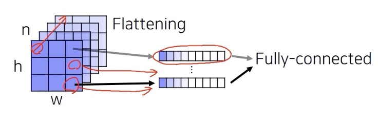 각 위치마다 채널축으로 flattening한다고 생각해보자.
