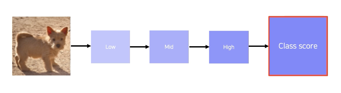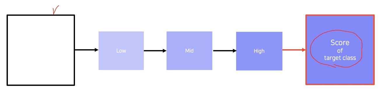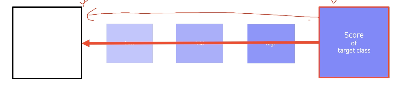 $f()$ CNN 모델 f를 거쳐서 특정 class 에 대한 score를 출력, 예를 들면 강아지 클래스에 대한 스코어 고 부분만 고려를 한다.