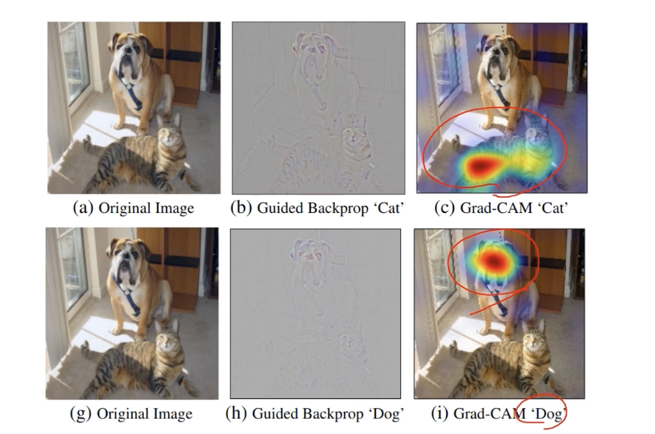 최근에는 grad cam 이 더 개선되어서 특정 결과 값 산출 뿐만 아니라, 다른 건 왜 아닌지까지 해석할 수 있는 방법으로 확장이 되었다.