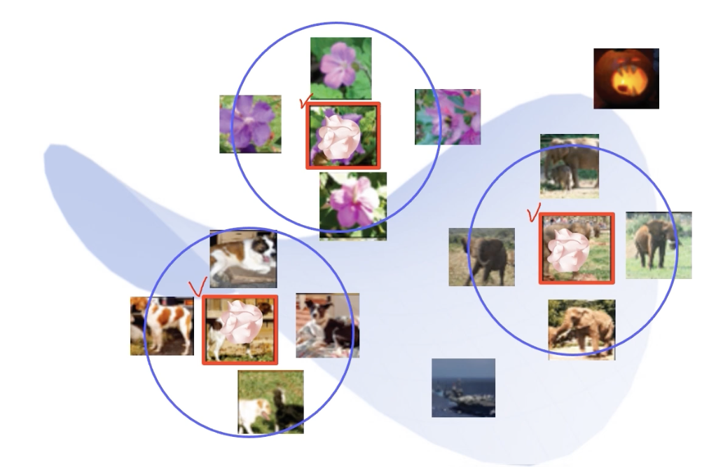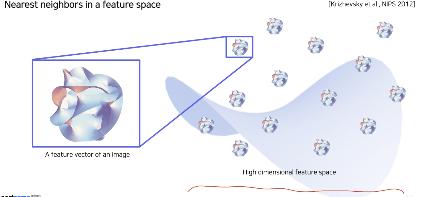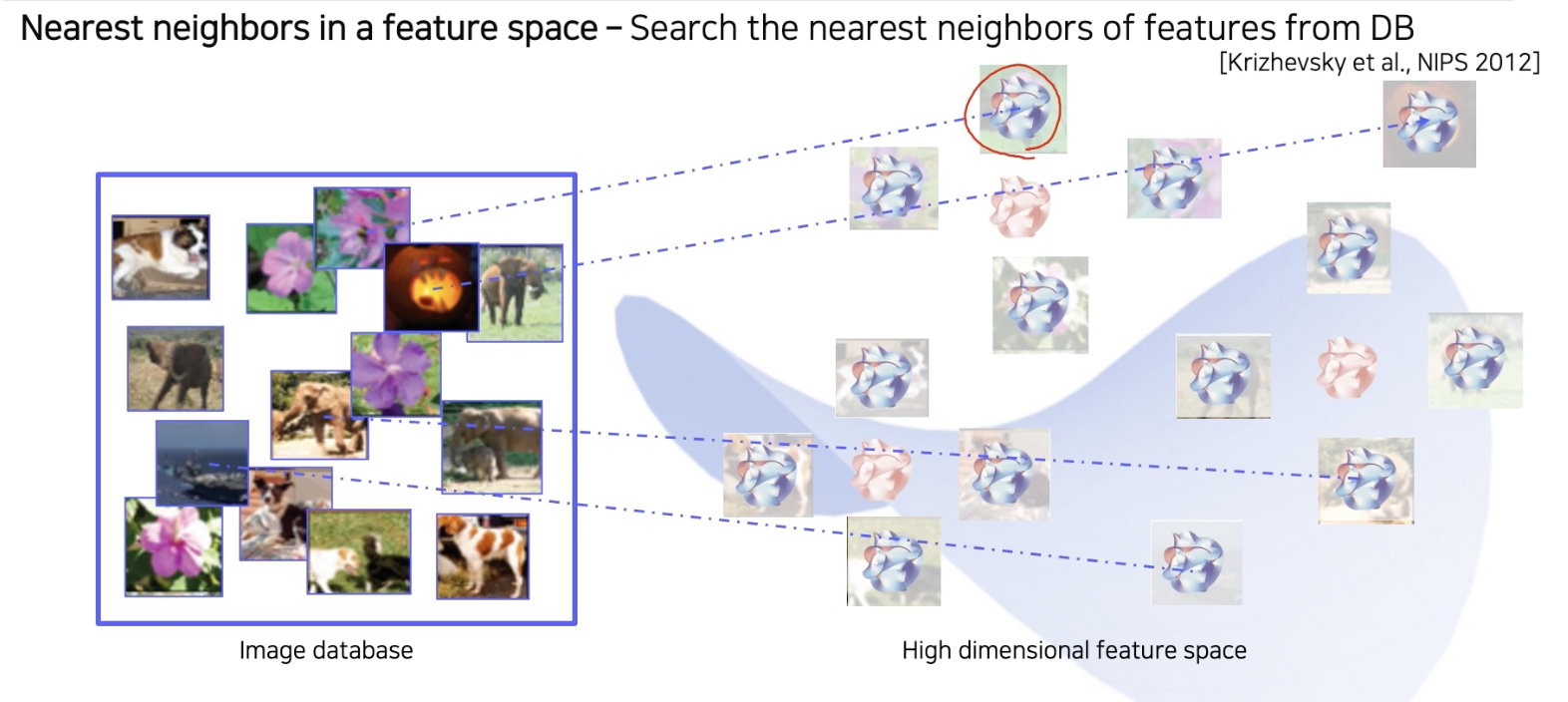 DB에서 뽑은 영상들은 feature space 어딘가에 다 위치한다. (당연히 feature는 영상과 연결이 되어있다.)