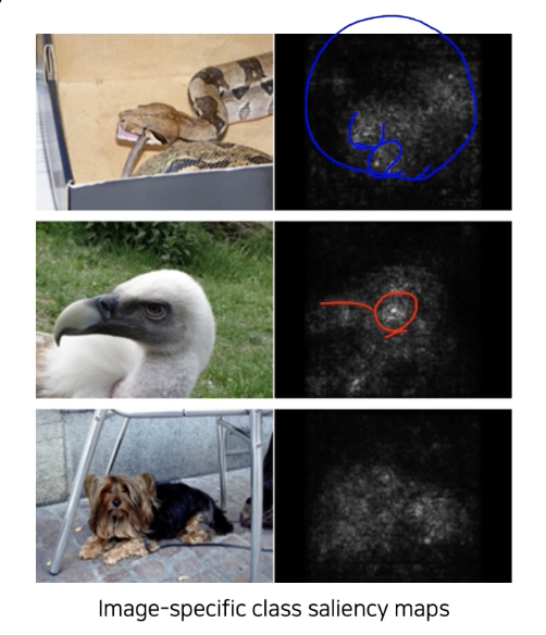 결국 이 방법은 input단에서 어떤 구간이 민감했는지 보는 것이고, 상단의 model이 어떤 이미지를 상상하는지 본 것인데, 해당 방법들이 굉장히 유사하다.