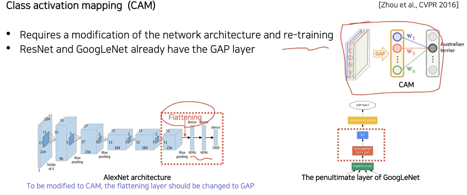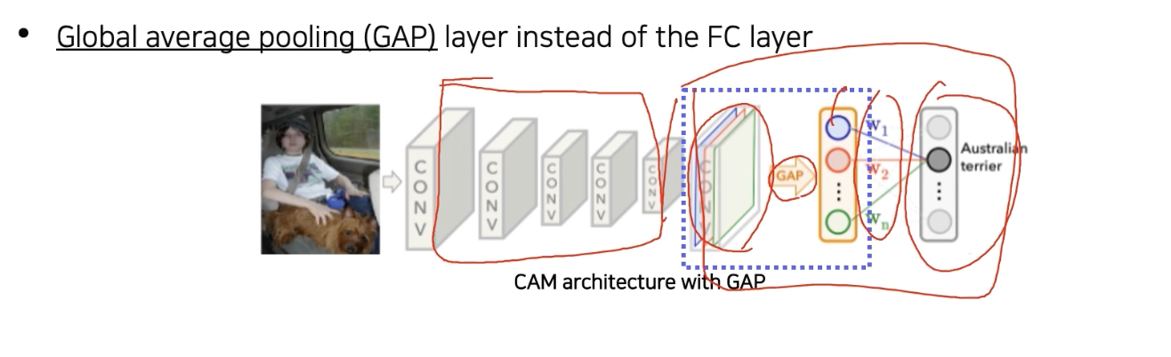 CAM 알고리즘은 neural net 의 일부를 좀 개조해야 한다.