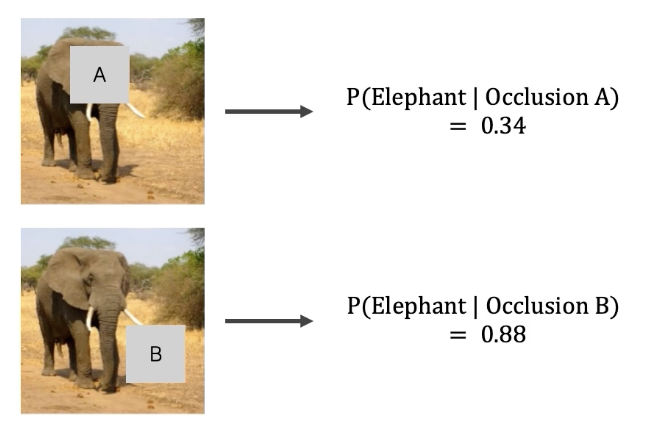Occlusion patch로 가리고 모델에 넣는다. 그때 올바르게 대답할 확률을 산출