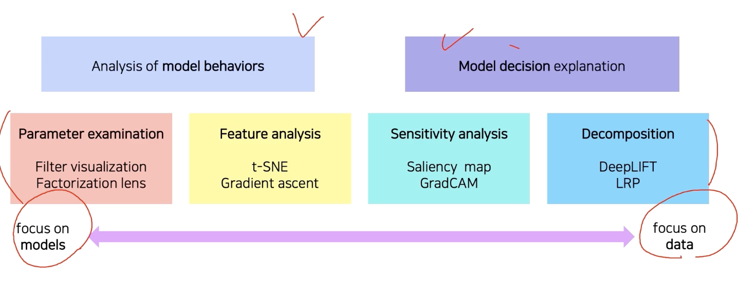 모델이 특정 입력을 보았을 때, 특정 입력을 어떤 각도로 바라보고 있는지 해석하는 방법들에 대해서 살펴보자.