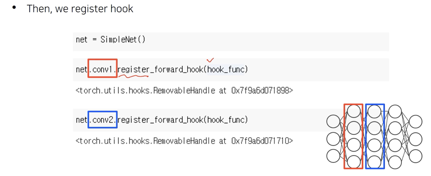 hook을 걸고 싶은 layer에다가 hook을 걸어준다.