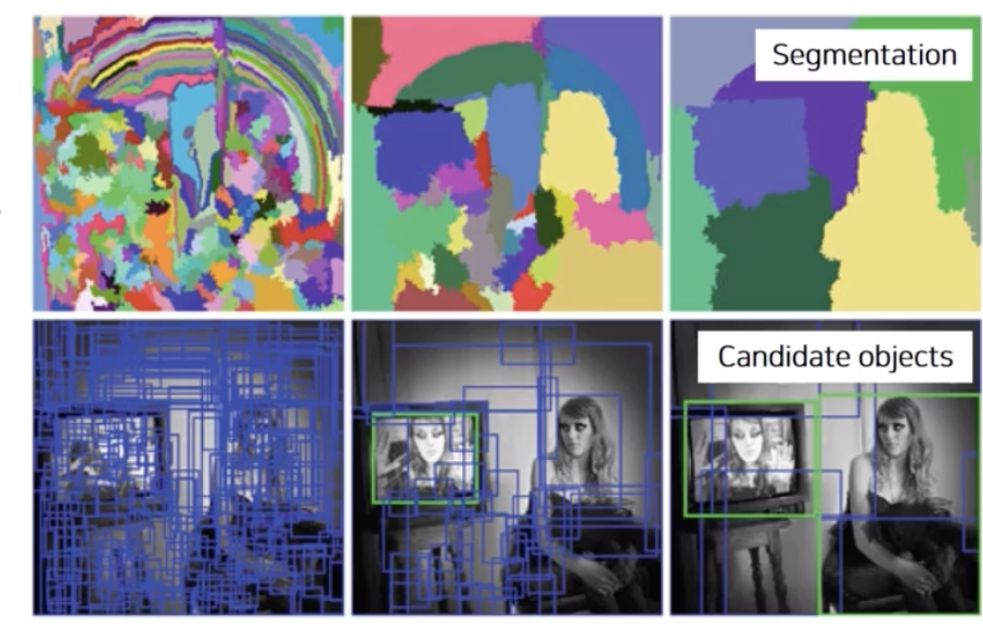 - 이를 통해 찾아낸 큰 segmentation(3번째 사진)을 포함하는 bounding box 를 추출해서 물체의 후보군으로 사용
