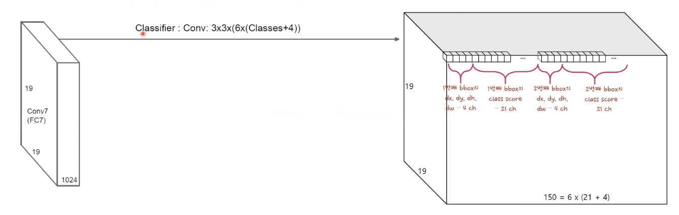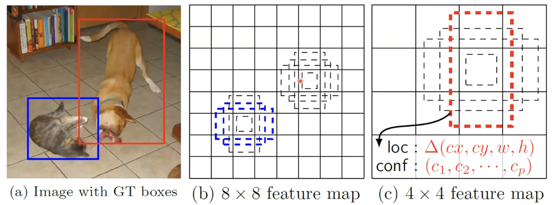 SSD는 p(channel) X m X n 의 fature layer 에 대해 detection을 수행할 때 p(channel) X 3 X 3 convolution 을 수행한다.