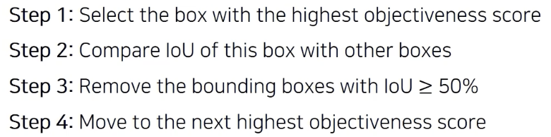 그럴듯한 object bounding box 만 남겨두고 허수로 막 제안한 것들을 제거한다.