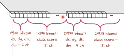 Bounding Box 하나를 뽑을 때 (x,y,w,h) 4개의 정보와, c개의 classification 정보가 필요