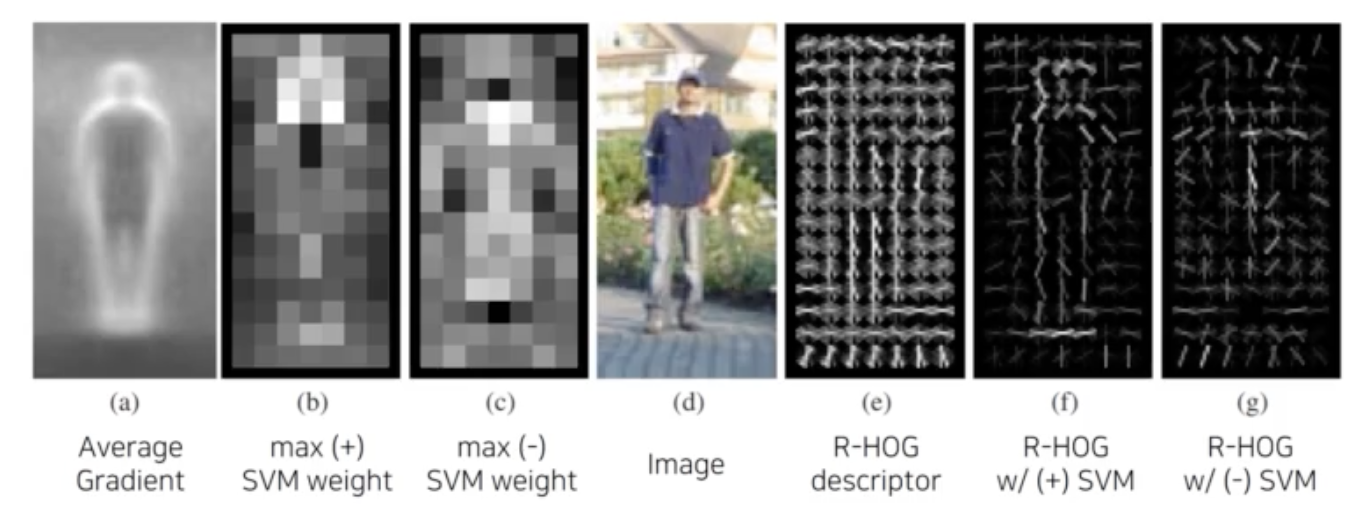 사람 영상의 경계선의 평균선을 내자 실루엣을 찾아낼 수 있었다. 영상의 경계선을 특징으로 모델링하면 사람 찾는데 도움이 되는구나, 라는 엔지니어링 기법이 유행했다. (사람의 직관에 의존한 알고리즘)