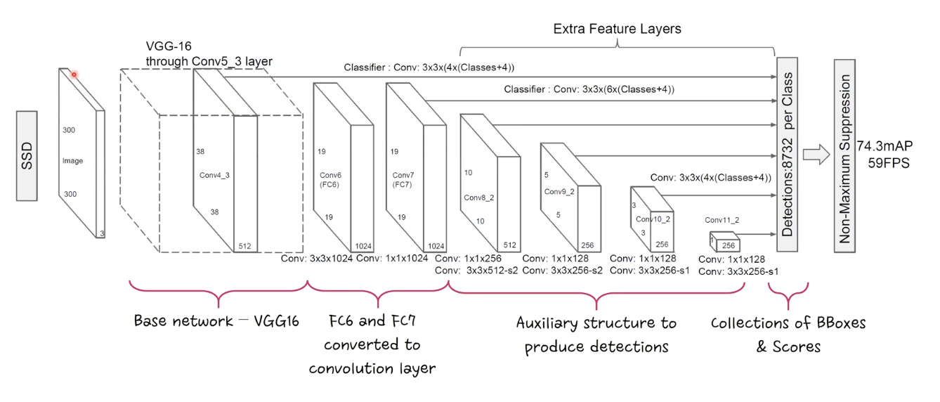 특징은 중간 중간에 feature map 을 만들어가면서 bounding box 를 계속 뽑아낸다.