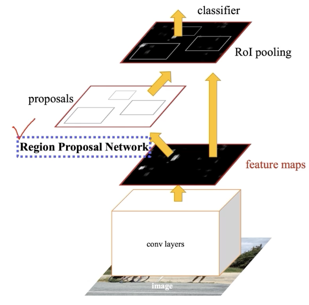 Selective Search 와 같이 third party 의 알고리즘 대신에 region proposal network, RPN 을 제안하여 대체했다.