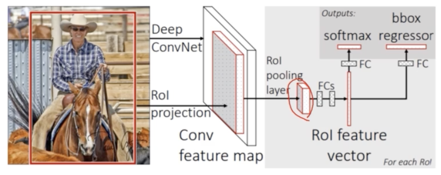 ROI(region of interest) pooling (한번 뽑아놓은 feature를 여러번 재활용)