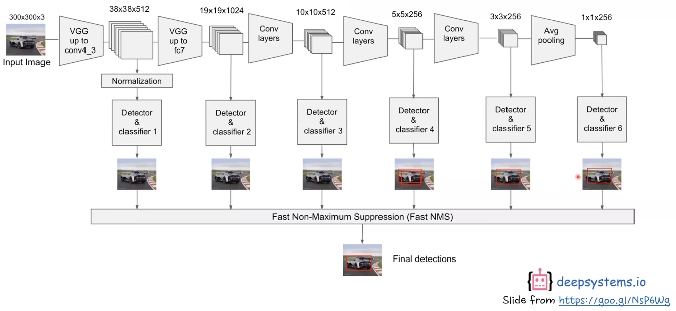 큰 물체는 뒤쪽에 있는 상대적으로 뒤쪽에서 detect 하고 작은 물체는 앞에서 detect한다.